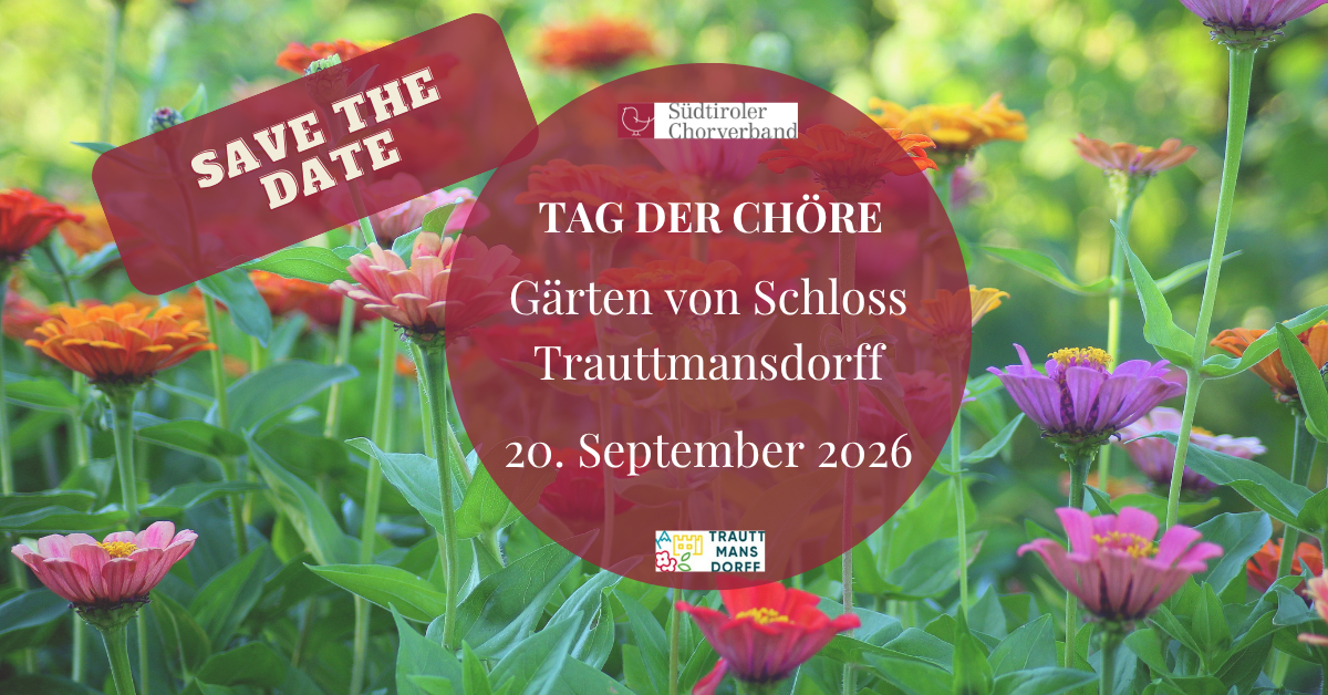 „Tag der Chöre“ in den Gärten von Schloss Trauttmansdorff Sonntag, 20. September 2026 Die Gärten von Schloss Trauttmansdorff in Meran ...