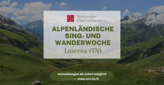 Alpenländische Sing- und Wanderwoche 2026in Luserna (TN) Programm: Ernst Thoma wird zusammen mit Verena Gruber die Woche mit gewohnter Kompetenz und Humor leiten, auf ausgewählten Wanderungen erkunden wir die Schönheiten von Luserna, auf dem südlichen Ausläufer der Hochebene von Lavarone und Folgaria in Richtung Passo Vezzena gelegen. Sängerinnen und Sänger […]