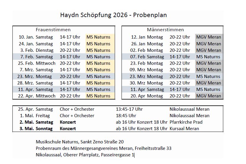 Angesichts der musikalischen Komplexität und zur optimalen Vorbereitung werden wir wieder gezielte, separate Proben für die Frauen- und Männerstimmen abhalten.